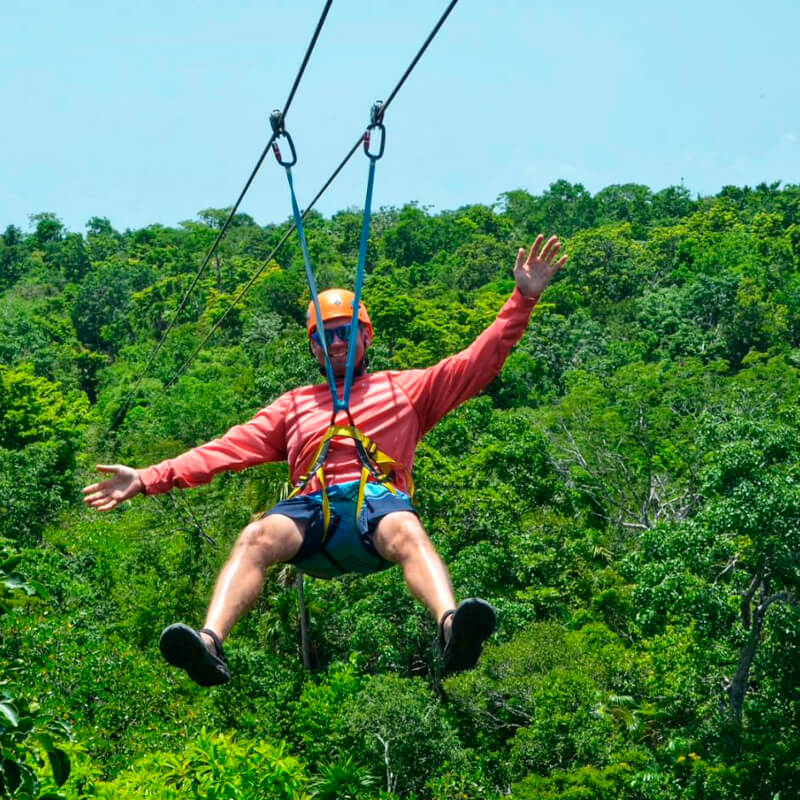Get ready for an exciting jungle adventure in a private location with an underground cenote. This action-packed combo includes four activities in one tour. Start by riding an ATV through a jungle circuit — expect a bumpy, muddy, and incredibly fun ride. Then, fly through the treetops on a two-zipline circuit with amazing views of the surrounding landscape.